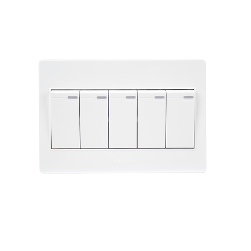 สวิตช์ทางเดียว 5 ช่อง แบบลอยM4N-S51ถูกออกแบบมาเพื่อให้เข้ากับการตกแต่งที่เรียบง่าย และการติดตั้งที่สะดวกสบายโดยไม่ต้องเจาะผนังวัสดุถูกเลือกสรรอย่างดีมาพร้อมกับการออกแบบที่ดูสวยงามมากขึ้น รวมทั้งผ่านการรับรองมาตรฐาน มอก. จึงมั่นใจได้ในความปลอดภัย