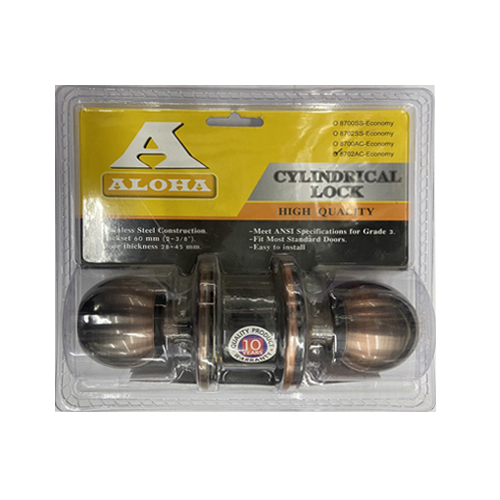 ลูกบิดห้องน้ำ Aloha 8702/AC สีทองแดง ป้องกันการถูกกัดกรอน ระยะลิ้นกลอน 60mm ลูกบิดประตูห้องทั่วไป หัวกลมด้าน ติดตั้งง่าย ใช้งานสะดวก คุณภาพดี แข็งแรง ทนทาน มีกุญแจล็อค ลูกกุญแจ 3 ดอก